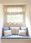 A classic ticking in this fresh blue printed on a smart herringbone linen, great in blinds and cushions!