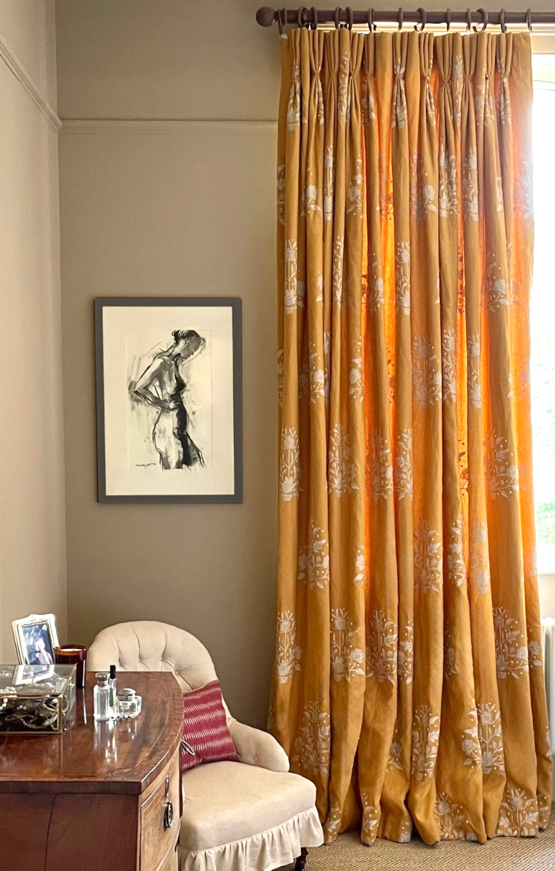 Such a pretty embroidered flower giving a lovely texture to the linen background. Stunning for curtains and blinds.